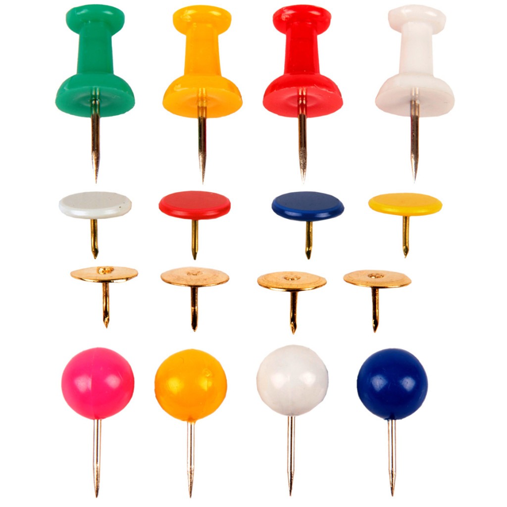 Különböző fejű, színes és réz rajzszögek. 200 db.