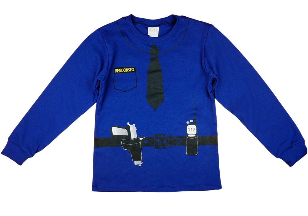 Minden kisfiú álma, hogy rendőr lehessen! Hát még mikor ebben az édes, kék színű, rendőrös mintával díszített, 2 részes fiú pizsamában aludhat! A pizsama minőségi magyar termék, első osztályú kivitelezésben, garantáltan hosszú élettartamot biztosít. A 100% pamutfelhasználásnak köszönhetően a pizsama rendkívül kényelmes és bőrbarát, így gyermeked egész éjjel nyugodtan alhat benne. Nappal pedig büszkén mutathatja meg barátainak a rendőrös mintát, amitől még valóságosabbnak érezheti magát a rendőri szerepben.