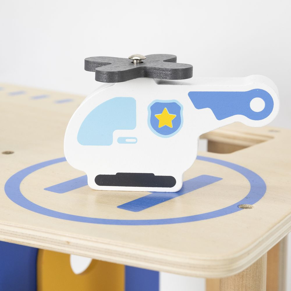 A játékszett egy háromszintes rendőrkapitányságot tartalmaz helikopter-leszállóval, rendőrautóval, helikopterrel, fogdával, lifttel és különféle rendőrségi kiegészítőkkel. Az eszközök és járművek kiválóan alkalmasak szerepjátékra, fejlesztve a gyerekek képzelőerejét, történetalkotó képességét és szociális készségeit.