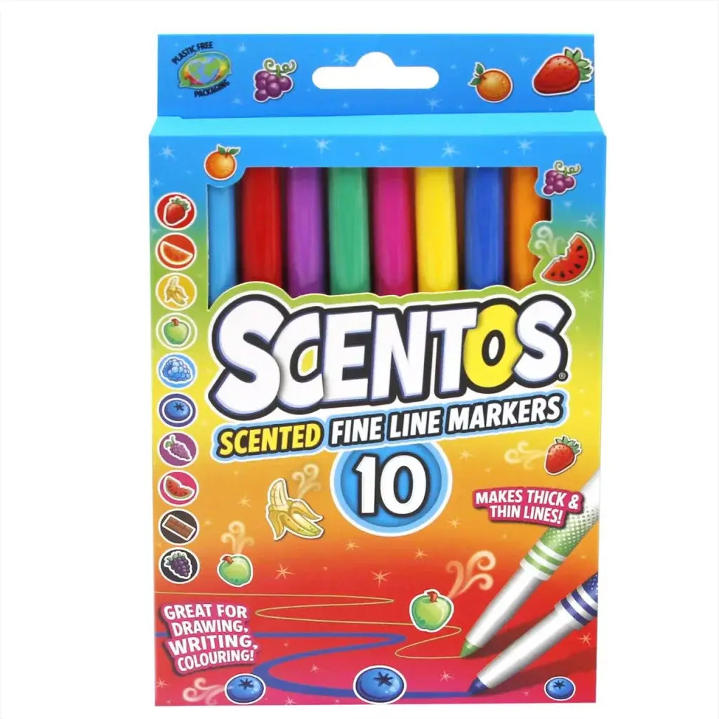 • A Scentos Illatos filctoll készlet igazi vidámságot hoz a rajzolás és írás világába. A színes filctollak nemcsak élénk árnyalataikkal, hanem kellemes, gyümölcsös illatukkal is feldobják az alkotást. Minden filctoll más színű és más illatú.
