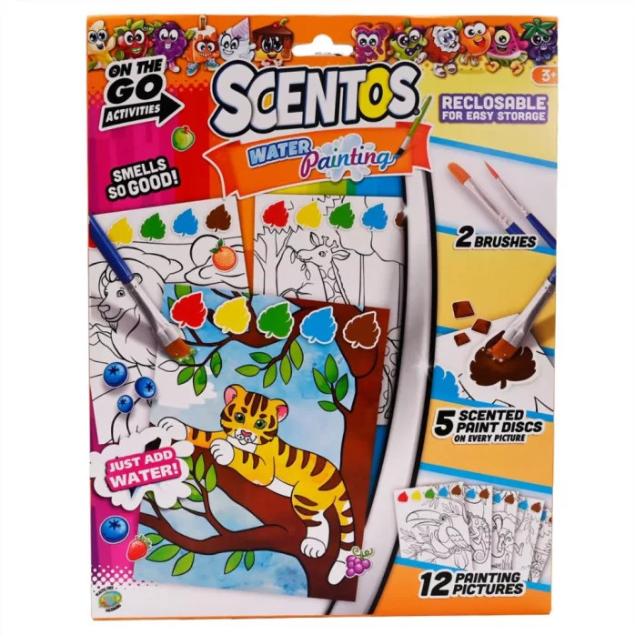 A csomagban 12 előnyomott kép található, amelyeket elég csak vízzel megfesteni. Az 5 festőkorong gyümölcsös illatokkal – banán, alma, áfonya, narancs és eper – teszi még élvezetesebbé a kreatív időtöltést. A festékek biztonságosak, nem mérgezőek, kifejezetten gyermekek számára készültek.