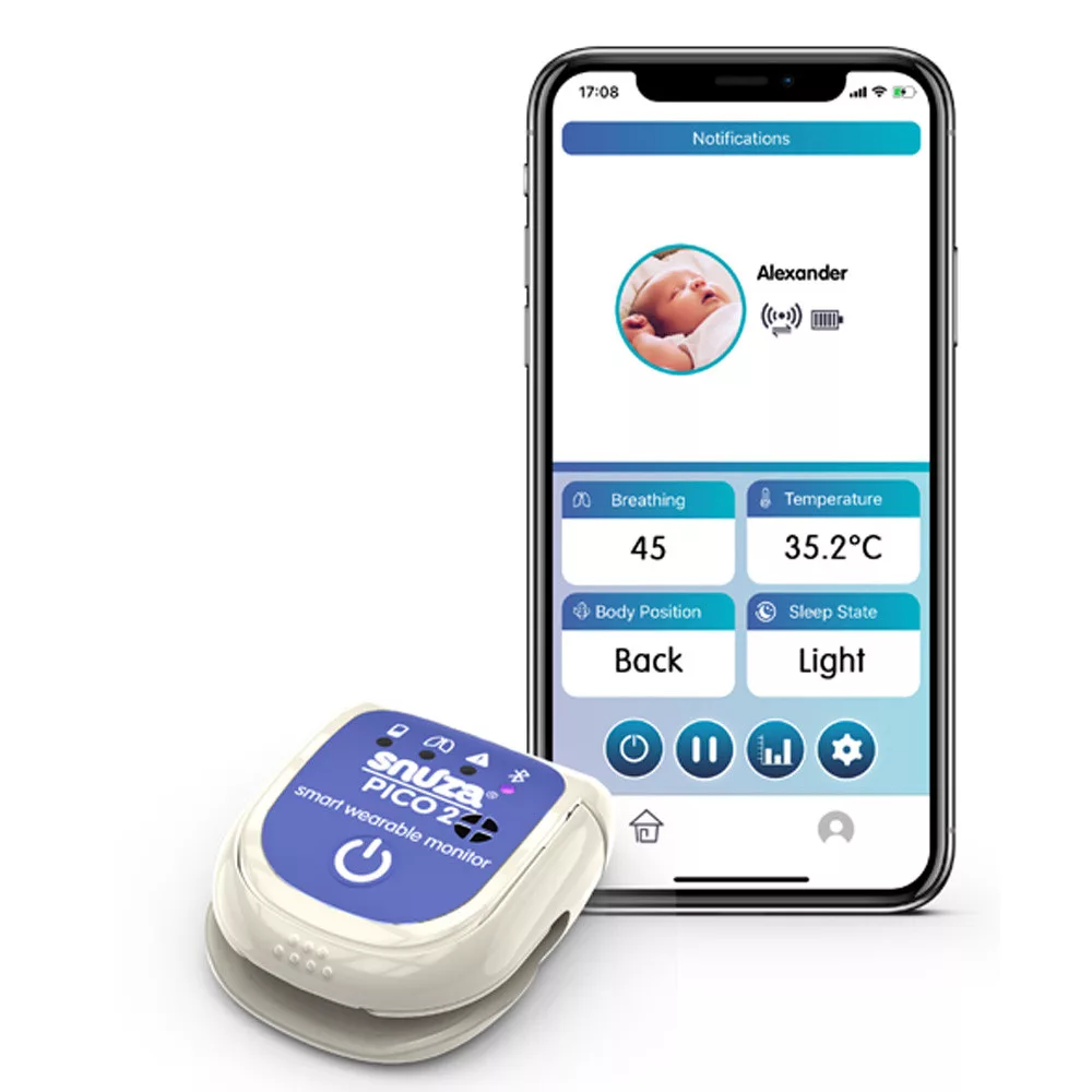 Ez egy érintkezésmentes készülék, ami érzékeli a legapróbb mozgást és felügyeli a babádat, amikor alszik.A Snuza® Pico App azonnal értesíti a mért adatokról – a hasi mozgásról, a testhõmérsékletrõl, a test pozíciójáról sõt arról is, hogy a készülék nem esett-e le.Okostelefonon is követheted a baba hasi légzõmozgását, figyelheted a hõmérsékletét és akár az alvási pozíciót is. Az applikáció elérhetõ IOS és Android készülékekre is.A Snuza® Pico érzékelheti a külsõ mozgást is, ezért nem ajánlatos használni a babával való együtt alváskor, illetve akkor, ha a baba babakocsiban vagy autósülésben alszik.
