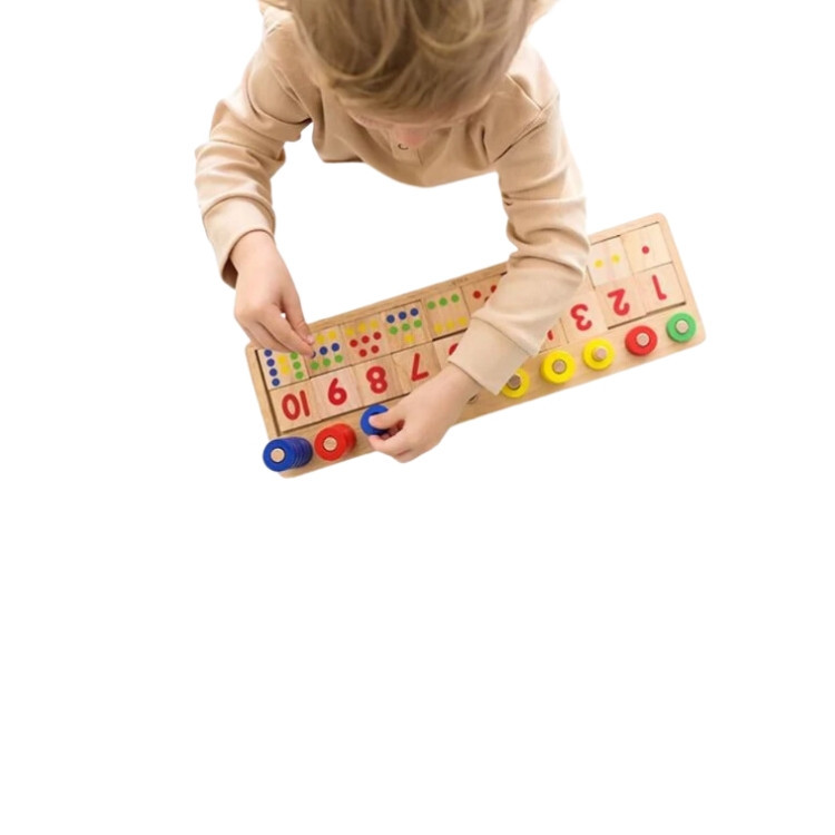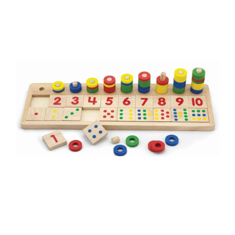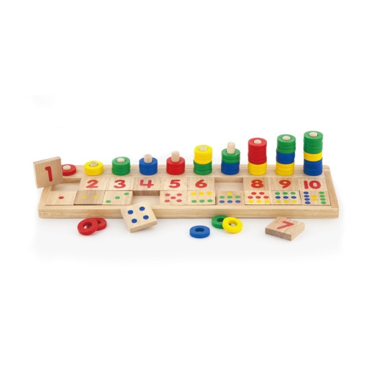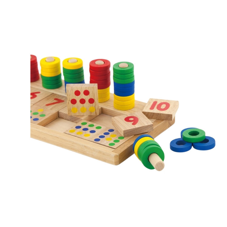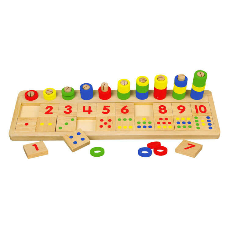 Fából készült számlépcső. Egy játék, amely segítségével nemcsak a számolás fejleszthető, hanem a színek gyakorlása is egyszerre. A feladat lényege, hogy annyi karikát helyezünk a rudakra, amilyen szám található előtte. Ráadásul a dominó lapjain található színeket is figyelni kell, mert azzal is egyeznie kell a karikák színeinek. Segít a szem-kéz koordináció, finommotorika fejlesztésében. A remek szórakozáson túl játékos módon gyakorolható a számolás, sorrendiség, kevesebb-több fogalmak.