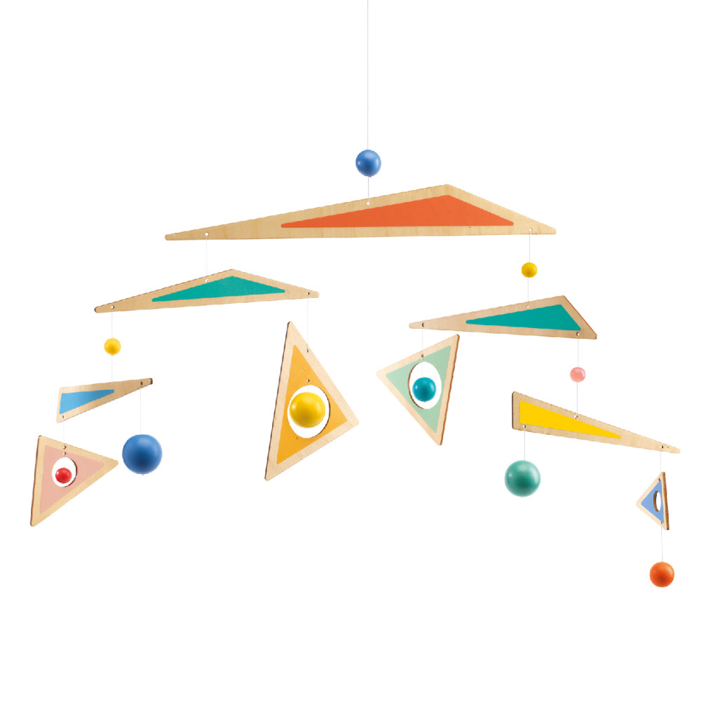 Előre összeszerelt szín és forma kavalkád, fa elemekből lévő függődísz, szélmobil a Djecotól.