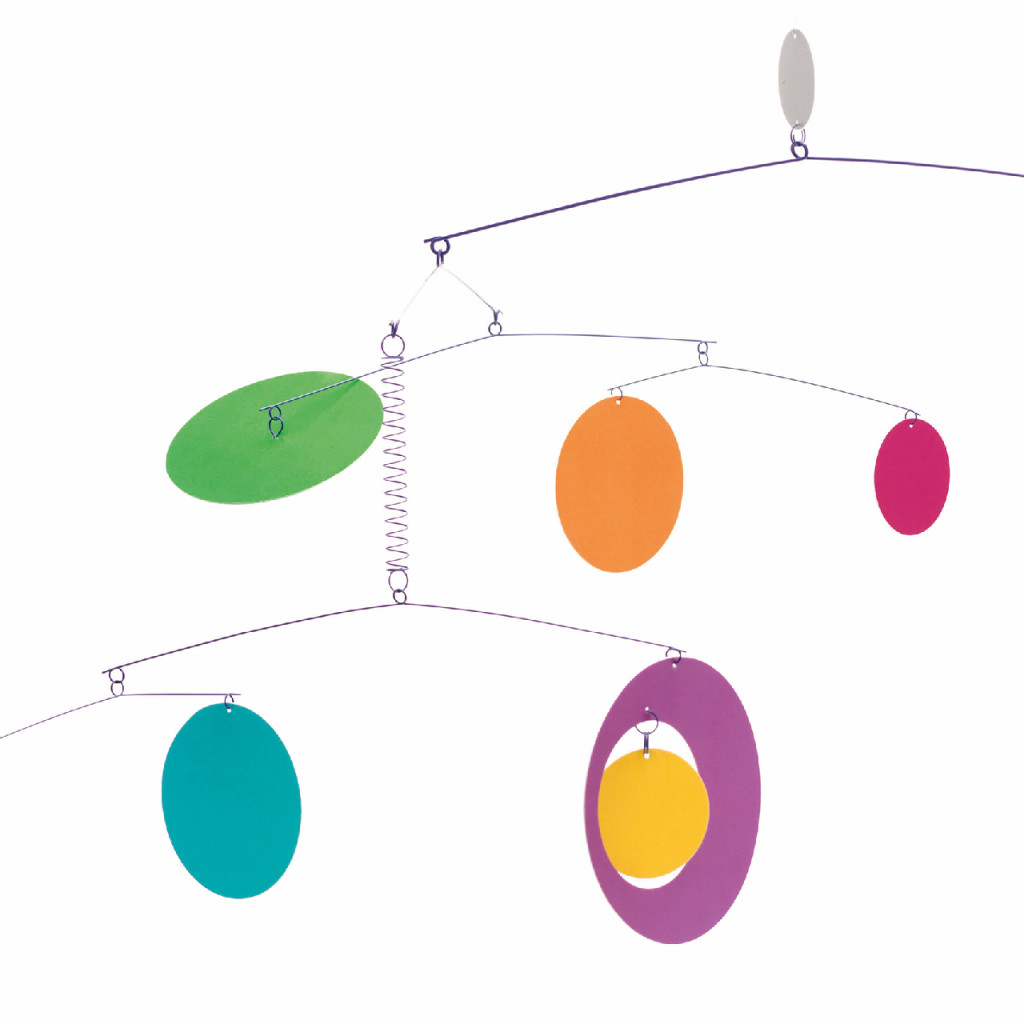 Színes körök tánca szélmobilon. Szélforgó, függődísz a gyermekszobába, nappaliba.