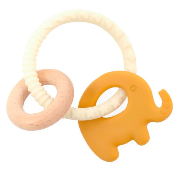 Gyönyörű és 100%-ban nem mérgező anyagból készült szilikon és fa rágóka. Ez a fejlesztő szilikon rágóka a legkisebbekk számára lett kialakítva. A játék serkenti a csecsemők látását, mozgását és tapintásást is.
