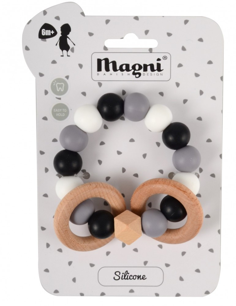 Szilikon és fa rágóka pasztell szürke gyöngyökkel Magni