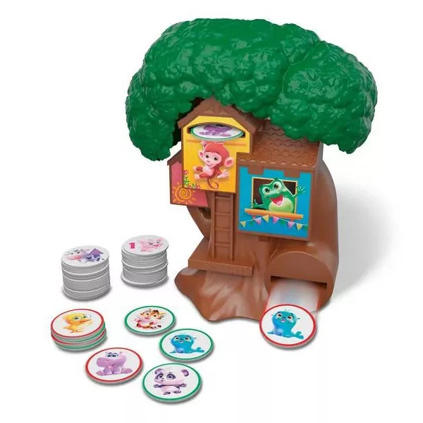 Fedezd fel a mókás lombházas kalandot, ahol a béka és állatos barátai – elefánt, majom és tigris – csúszdáznak a fa házikóban! A játék három különböző játékszinttel segíti a fokozatos fejlődést, miközben garantált a jókedv és a közös élmény.