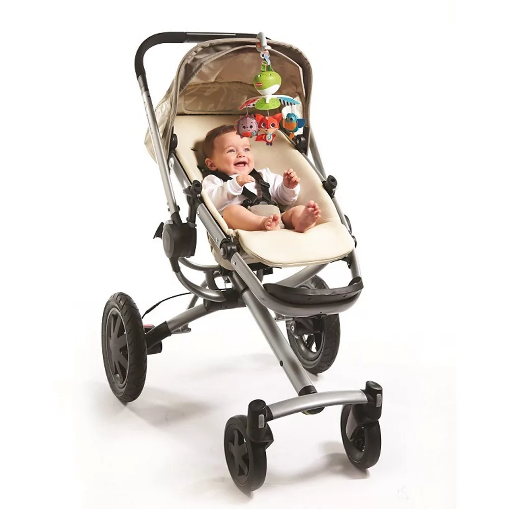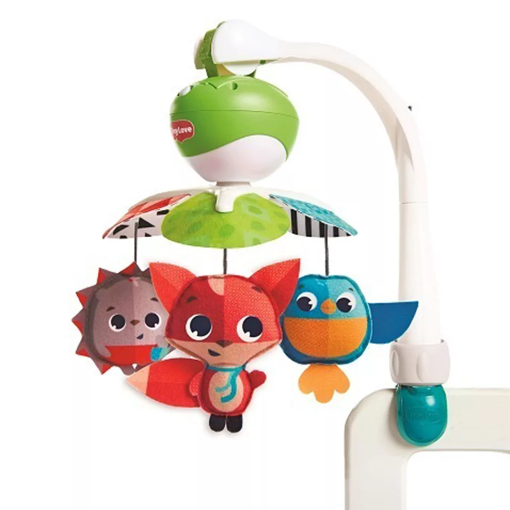 A zenélõ-forgó hangerõ-szabályozóval van ellátva, amely segíti a babákat a nyugalom elérésében, így könnyebben alszanak el. Könnyen bárhová magunkkal vihetõ. Multifunkcionális játék, mivel a forgón puha plüss anyagból készült, mosható figurák kaptak helyet, melyeket a kicsi akár alvótársnak is használhat.