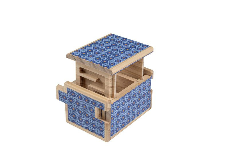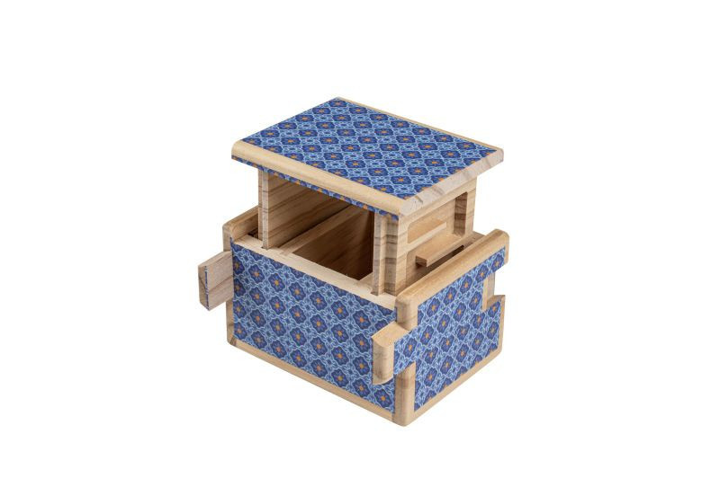 Elegáns fa ördöglakat titkos rekesszel – első pillantásra egyszerű doboz, valójában egy rejtvény.