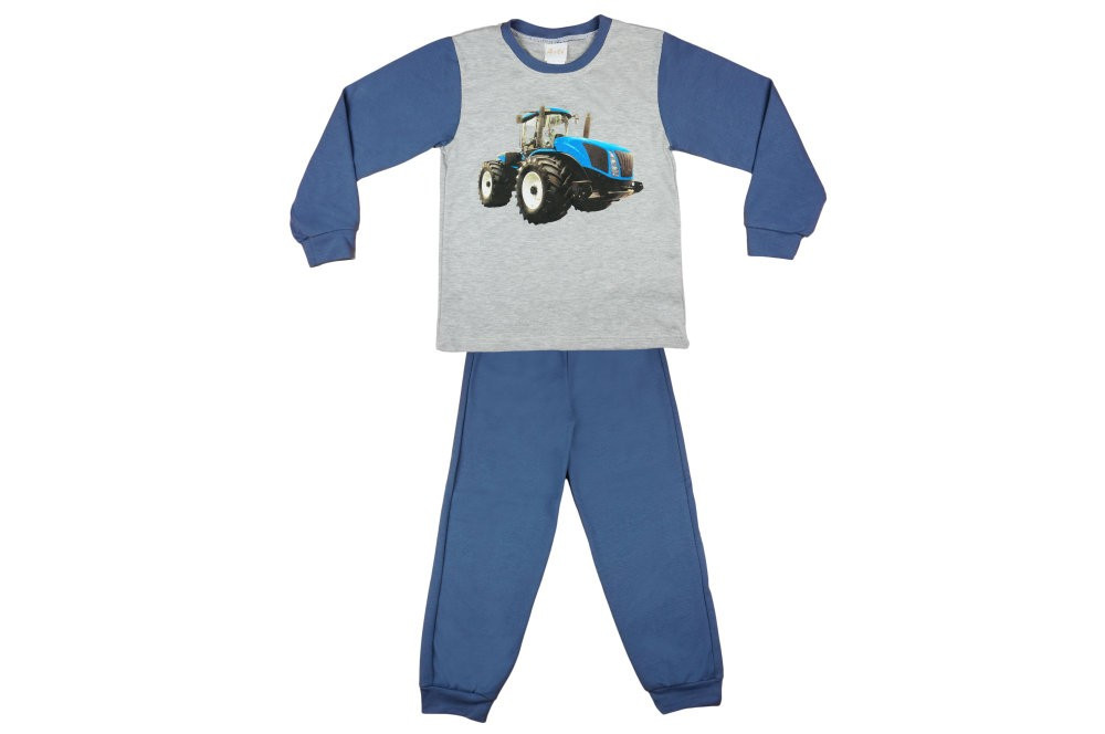 A traktor mintás fiú hosszú pizsama ideális választás a kis traktor rajongóknak! A szürke színű pizsama felsőjét vidám traktor minta díszíti, míg az alsó rész egységes színű, ami tökéletesen kiegészíti a mintás felsőt. A pizsama 100% pamutból készült, így kényelmes és puha viseletet biztosít gyermeked számára. Magyarországon készült, I. osztályú minőségben, tehát biztos lehetsz benne, hogy hosszú időn keresztül élvezheti a minőségi anyag előnyeit. A megadott életkor csupán irányadó, kérünk, hogy mindig a gyermek mérete alapján válassz!
