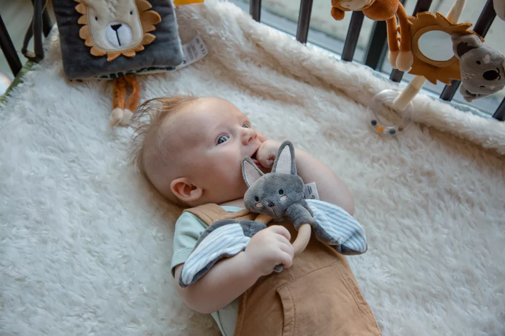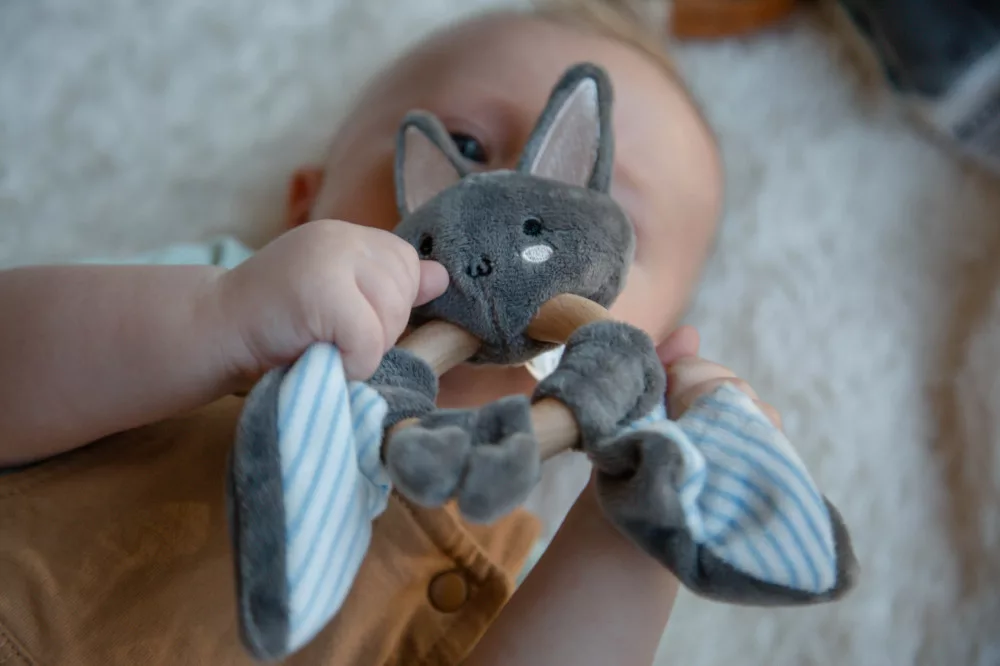 Igazán különleges gyűrűs rágóka a legkisebbek számára. A bájos, mosolygós denevér mintája rögtön elvarázsol minden kisgyermeket. Speciális kialakítása miatt felkelti a babák figyelmét és képes fenntartani érdeklődésüket, miközben fejleszti érzékelési és észlelési képességeiket.