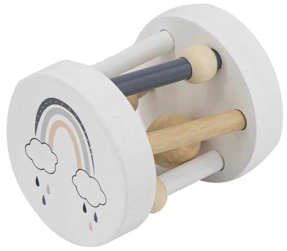 Kiváló minőségű fa anyagból készült és gyermekbarát vízbázisú festékkel van festve. A kontrasztos színek a kisbabák figyelmét még jobban felkelti ebben a korban. Két végén pedig egy aranyos szivárvány és egy napocska, holdacskával kapott helyett.