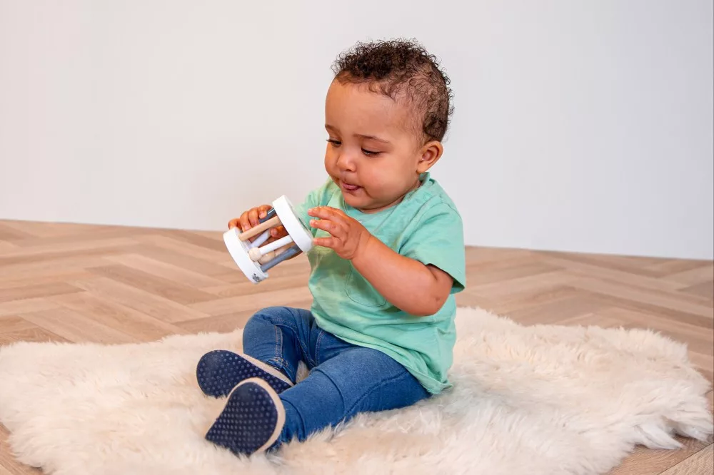 Egy nagyszerűen kivitelezett csörgő, mely nem csak kellemes hangot, ad ki, de gyermekünket mozgásra is ösztönzi, miközben gurítja maga előtt.