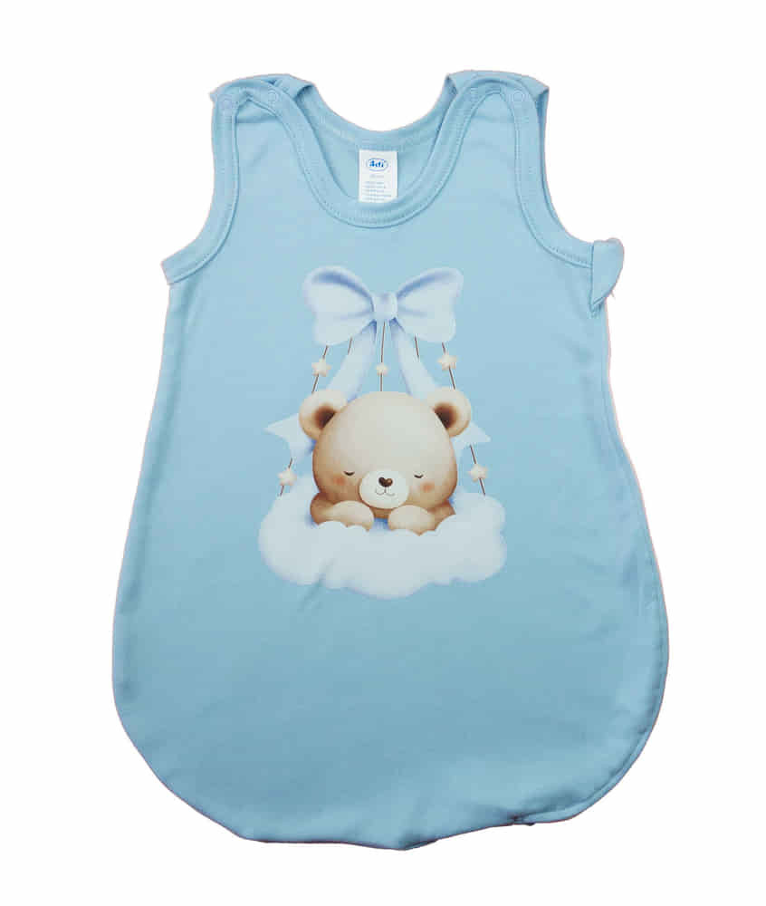 Ujjatlan Bébi Hálózsák,vékony pamut, 1 TOG Ez az ujjatlan bébi hálózsák ideális választás a nyári hónapokban vagy melegebb éghajlatokon. Kiváló minőségű, vékony pamutból készült, amely biztosítja a baba kényelmét és a megfelelő légáramlást, így a pici nyugodtan alhat a melegebb napokon is. A praktikus zippzáras oldal és a patentos váll kialakítás lehetővé teszi a könnyű fel- és levételt, nem zavarja a baba mozgását, így az éjszakai pelenkázás sem lesz gond. A minőségi magyar termék érzékeny bőrű babák számára is ideális, hiszen nikkelmentes patenttal készült, ami nem vált ki allergiás reakciót. A 1 TOG értékű hálózsák tökéletes választás melegebb hónapokra. A légáteresztő anyag segít a testhőmérséklet szabályozásában, így a baba bőrén mindig száraz és kényelmes marad. Ez a hálózsák nemcsak kényelmes és praktikus, hanem segít a biztonságos alvásban is, mivel megszünteti a takarók elmozdulásának veszélyét. Tökéletes választás a kisbabák számára, akik kényelmes és biztonságos pihenést igényelnek! Minőségi magyar termék Anyaga: 100% pamut, Minőség: I. osztály