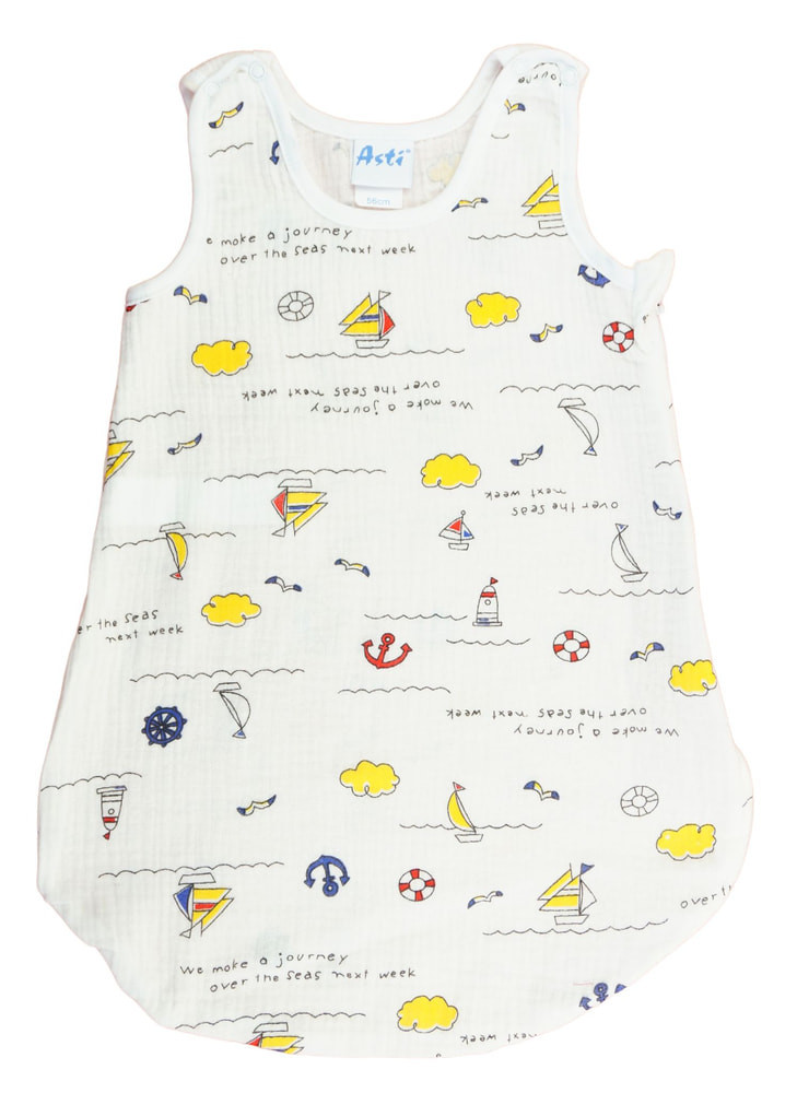 Öltöztesse álomba kisbabáját ebben a könnyű vékony duplagéz anyagból készült vitorla mintás, ujjatlan hálózsákban! Az oldalt cipzáras, vállon patentos kialakításnak köszönhetően könnyedén felvehető és levehető, így az éjszakai pelenkázás sem lesz gond. A hálózsák 100% pamut anyagból készült, ami puha érintésű és légáteresztő, így a baba éjjel-nappal kényelmesen és biztonságosan tud majd aludni. A minőségi magyar termék érzékeny bőrű babák számára is ideális, hiszen nikkelmentes patenttal készült, ami nem vált ki allergiás reakciót. A 1 TOG értékű hálózsák tökéletes választás melegebb hónapokra. Segítünk a választásban: táblázatunk segítségével könnyedén kiválaszthatja a megfelelő hálózsákot az évszaktól és a hőmérséklettől függően.