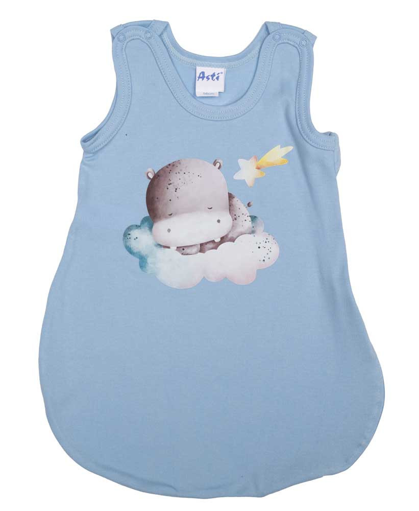 Ujjatlan vékony pamut hálózsák Vizilovas mintával 1 TOG Öltöztesse álomba kisbabáját ebben a kék, viziló mintás, ujjatlan hálózsákban! Az oldalt cipzáras, vállon patentos kialakításnak köszönhetően könnyedén felvehető és levehető, így az éjszakai pelenkázás sem lesz gond. A hálózsák 100% pamut anyagból készült, ami puha érintésű és légáteresztő, így a baba éjjel-nappal kényelmesen és biztonságosan tud majd aludni. A minőségi magyar termék érzékeny bőrű babák számára is ideális, hiszen nikkelmentes patenttal készült, ami nem vált ki allergiás reakciót. A 1 TOG értékű hálózsák tökéletes választás melegebb hónapokra. Segítünk a választásban: táblázatunk segítségével könnyedén kiválaszthatja a megfelelő hálózsákot az évszaktól és a hőmérséklettől függően.