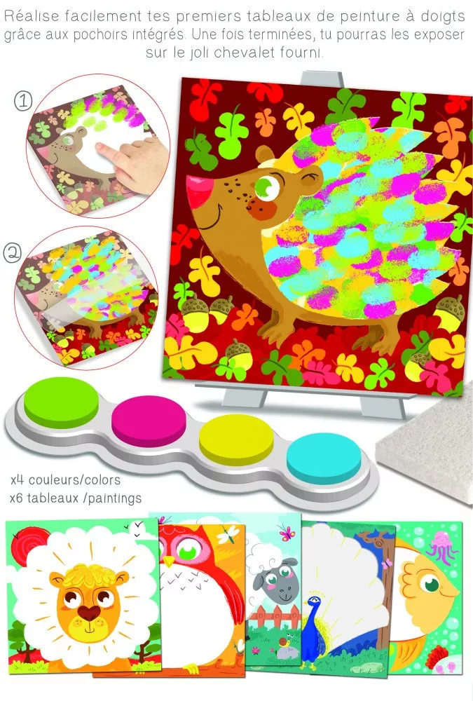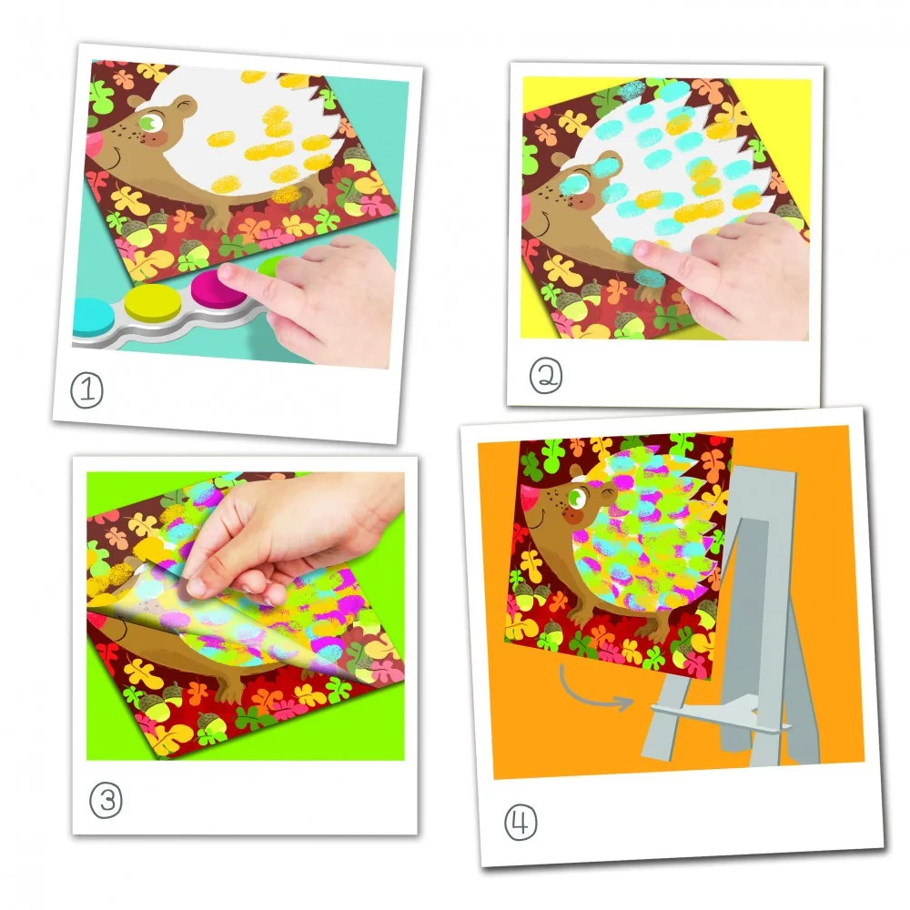 Kiváló készségfejlesztő a kisebb gyermekeknek! A képeket úgy tudják elkészíteni, hogy ecset helyett a saját ujjukat használják és mártják a festékbe. A fóliának köszönhetően a képek nem fognak elkenődni és nagyon szép fantáziadús és egyedi festmények születnek végeredményül.