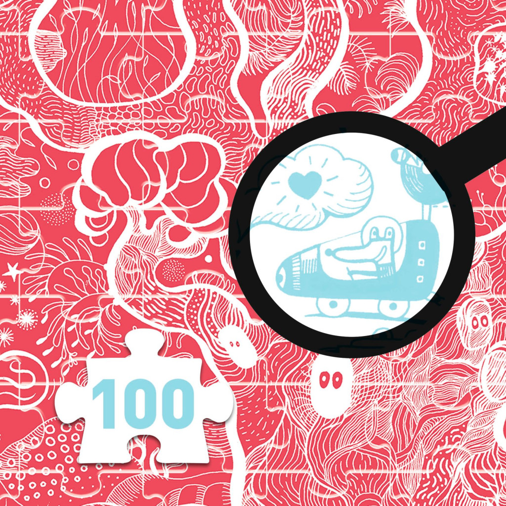 Egy 100 darabos puzzle, hagyományostól eltérő képpel! Izgalmas puzzle, nem csak a kirakása, hanem a kirakott kép is! Vajon mit lehet látni, amikor kész? Varázslatos puzzle: ha egy titkos eszközt az illusztráció fölé tesznek, lehet, hogy egy másik kép tárul fel? Az viszont nem titok, hogy a puzzle tartós, strapabíró anyagból készült, bármennyiszer kirakható újra, meg újra.