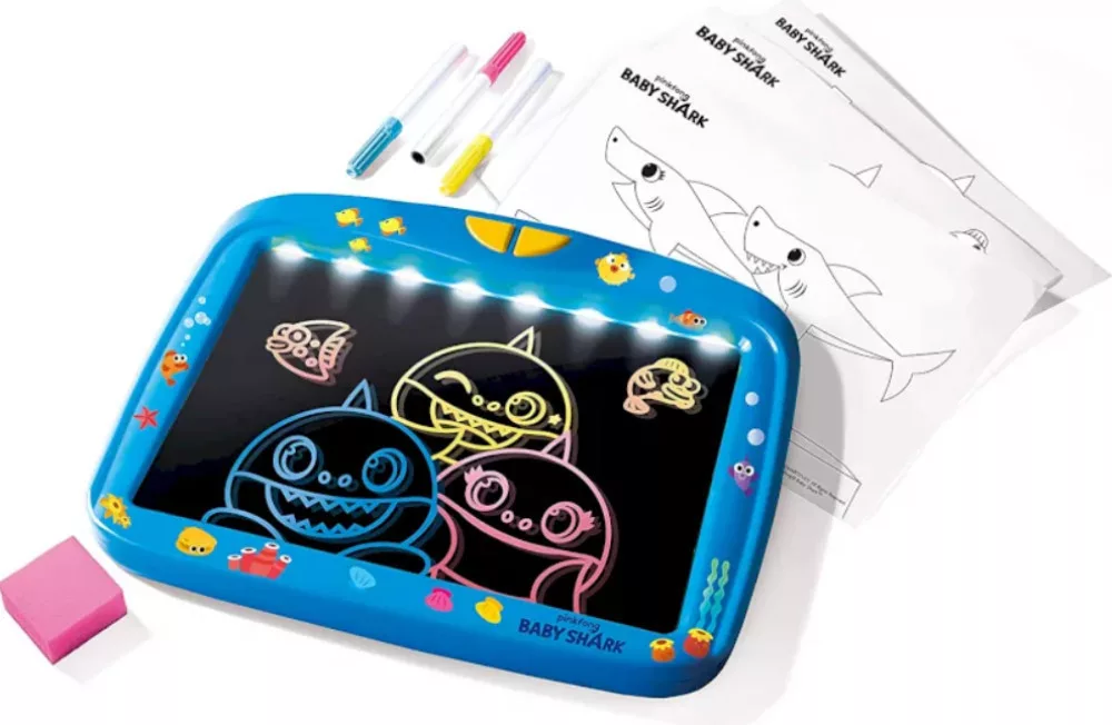 A Baby Shark aranyos kis cápáival találkozhat a gyermeked ezen a nagyszerű rajztáblán. A rajztáblára a készletben található speciális tollal lehet rajzolni fekete-fehérben. A tábla rendkívül könnyedén használható akár már 3 éves kortól használható, hiszen egy egyszerű mozdulattal letörölhető az alkotás, és már következhet is a következő.