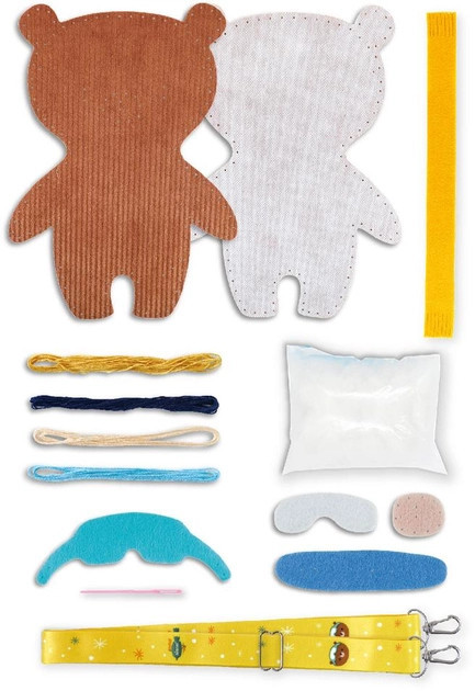 A puha és stílusos kordbársony anyagot a perforálás miatt igazán könnyű megvarrni. A csomag emellett tartalmazza az öntapadós filcanyagokat, a játék elkészítéséhez szükséges felszerelést, valamint egy állítható vállpántot.