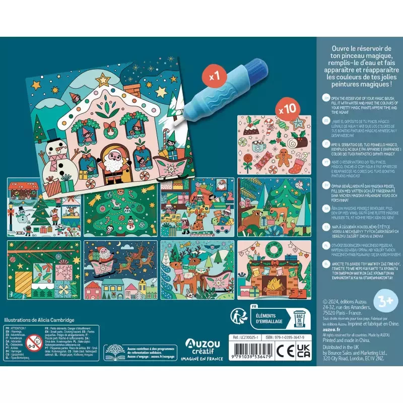 A készletben egy vízzel festő ecset és 10 db kép található karácsony témakörben.