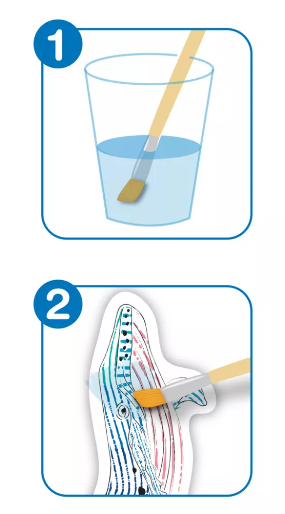 Ezzel a vízzel festő készlet segítségével a kicsik felfedezhetik a könnyű, szórakoztató festést, rendetlenség nélkül! A könyvjelzőkre nyomtatott színeket nedves ecsettel szabadíthatják fel. Fesd meg a könyvjelzőket, és hagyd, hogy a színek varázslatosan szétterüljenek!
