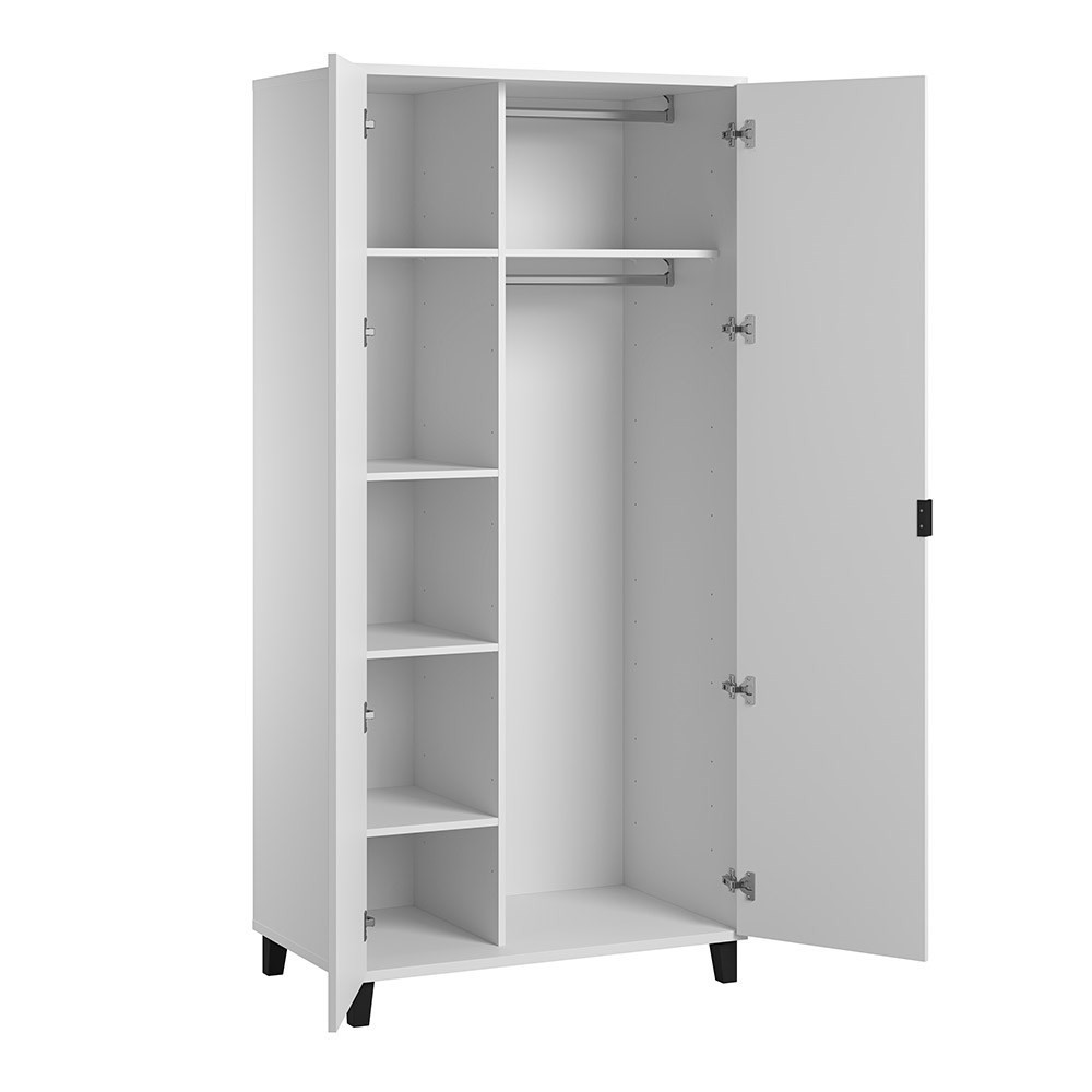 Tágas 2 ajtós nagyszekrény, amelyben remekül rendszerezhető a gyermek teljes ruhatára. A rengeteg tárolóhelyet kínáló bal oldalon 4 állítható magasságú polc található az összehajtogatott ruhák számára, míg a jobb oldalon két akasztósín és egy polc, mindennek meglesz a maga helye ebben a szépségben!