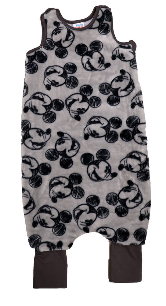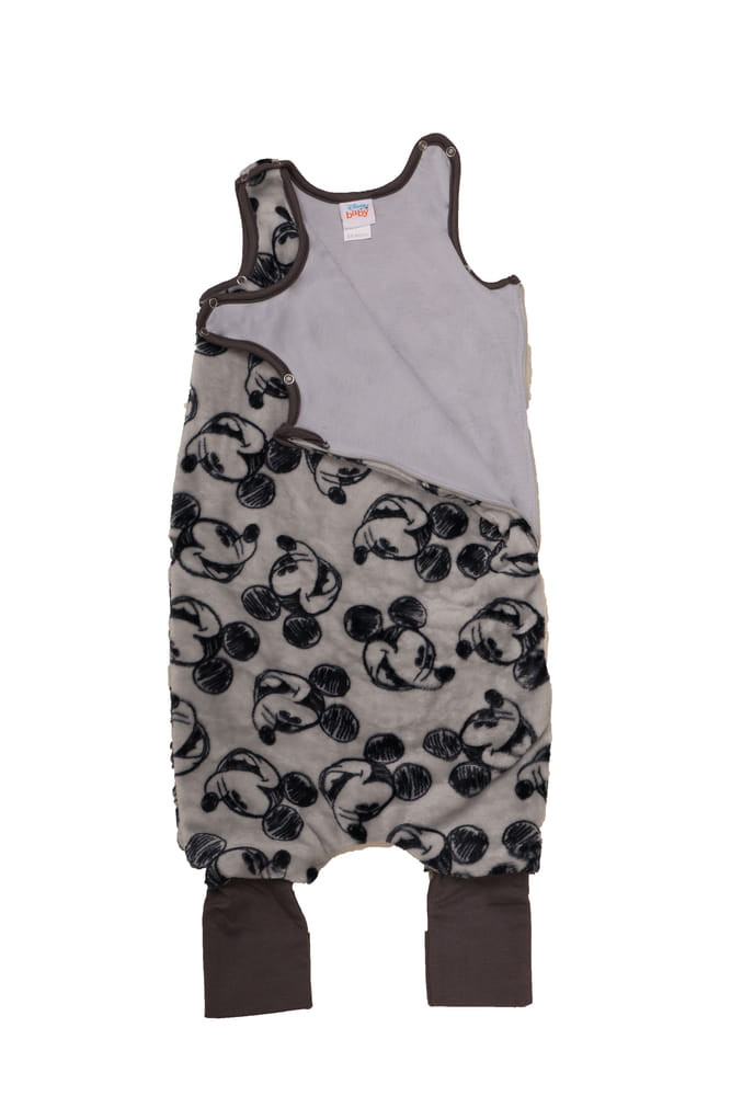 Mickey egér mintával nyomott oldalt cipzáras, vállon patentos, lábfejnél ráhúzható, ujjatlan pamut tipegő hálózsák.