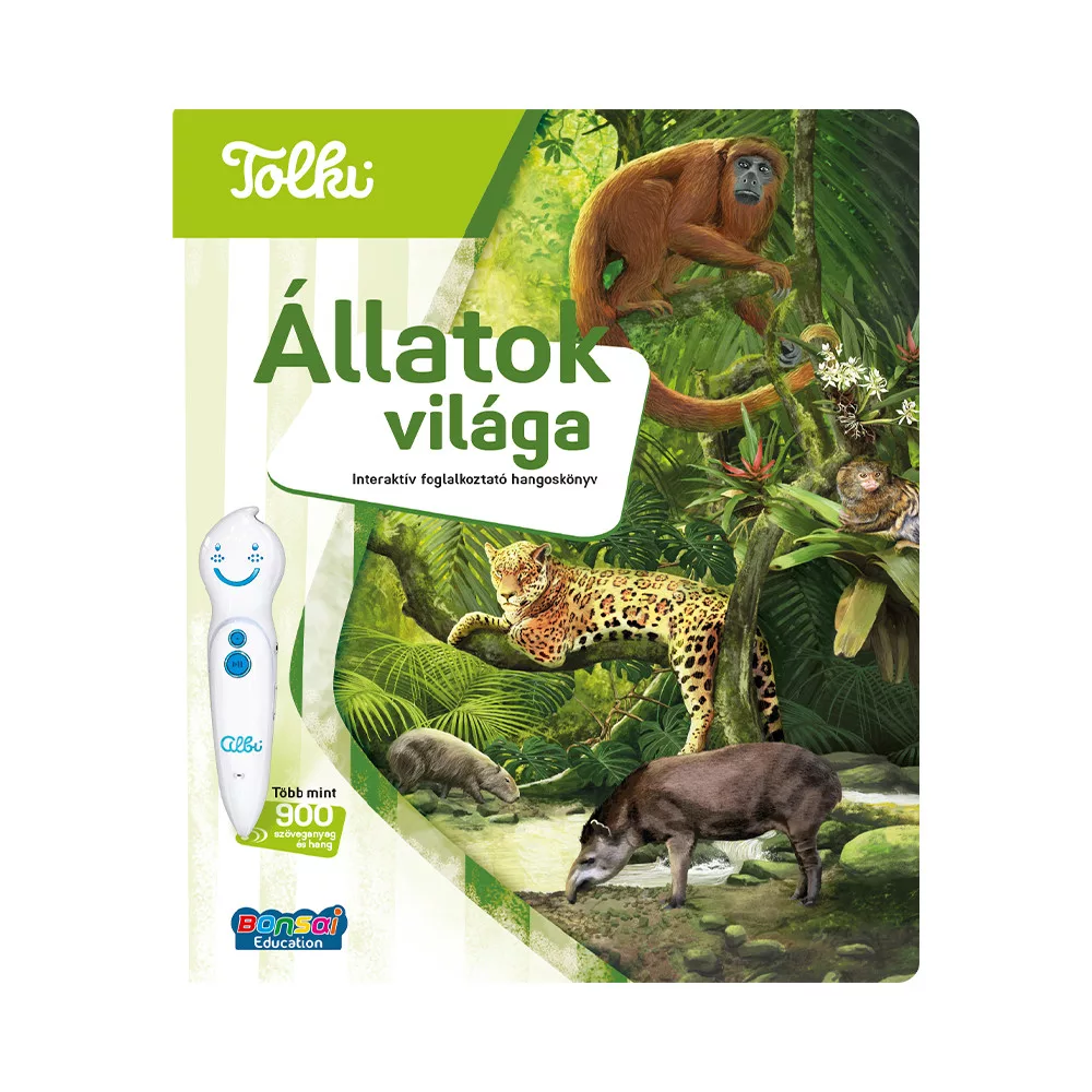 A Tolki Állatok Világa egy elektronikus tollal működő interaktív hangoskönyv, amely a 5-12 éves gyerekek számára készült. Ez a kiadvány élőhely szerinti bontásban mutatja be az állat- és növényfajokat, részletes információkkal és autentikus hangokkal kísérve.