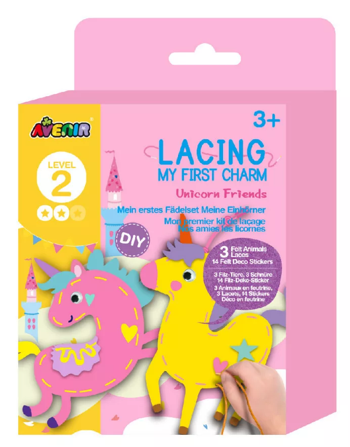 A gyerekek imádni fogják  a plüss figurákat, melyeket maguk alkotnak az Aveir My First Lacing Kit segítségével. Könnyű összefűzni az előre kilyukasztott darabokat a mellékelt fűzőkkel, majd hozzáadni a tölteléket, hogy egy imádnivaló figurát készítsetek.