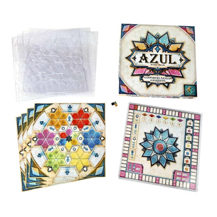 Megjelent az Azul: Színpompás pavilon, a népszerű Azul: Királyi pavilon társasjáték izgalmas kiegészítője! Ez a bővítés friss és lebilincselő kihívásokat kínál a legelkötelezettebb Azul rajongóknak, akik még magasabb szintre szeretnék emelni a játékélményt.
