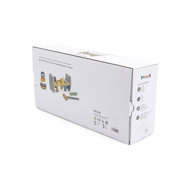 Méret 20,3 x 7,2 x 10,4 cm Pasztell színű kalapáló játék fahengerekkel. A mellékelt kalapács segítségével a hengereket kell egyre mélyebbre ütni. Amint minden henger a helyére került a keret megfordításával folytatódhat a móka tovább. Mialatt a gyermekek remekül szórakoznak, fejlődik a finommotorikus képességük és szem-kéz koordinációjuk.