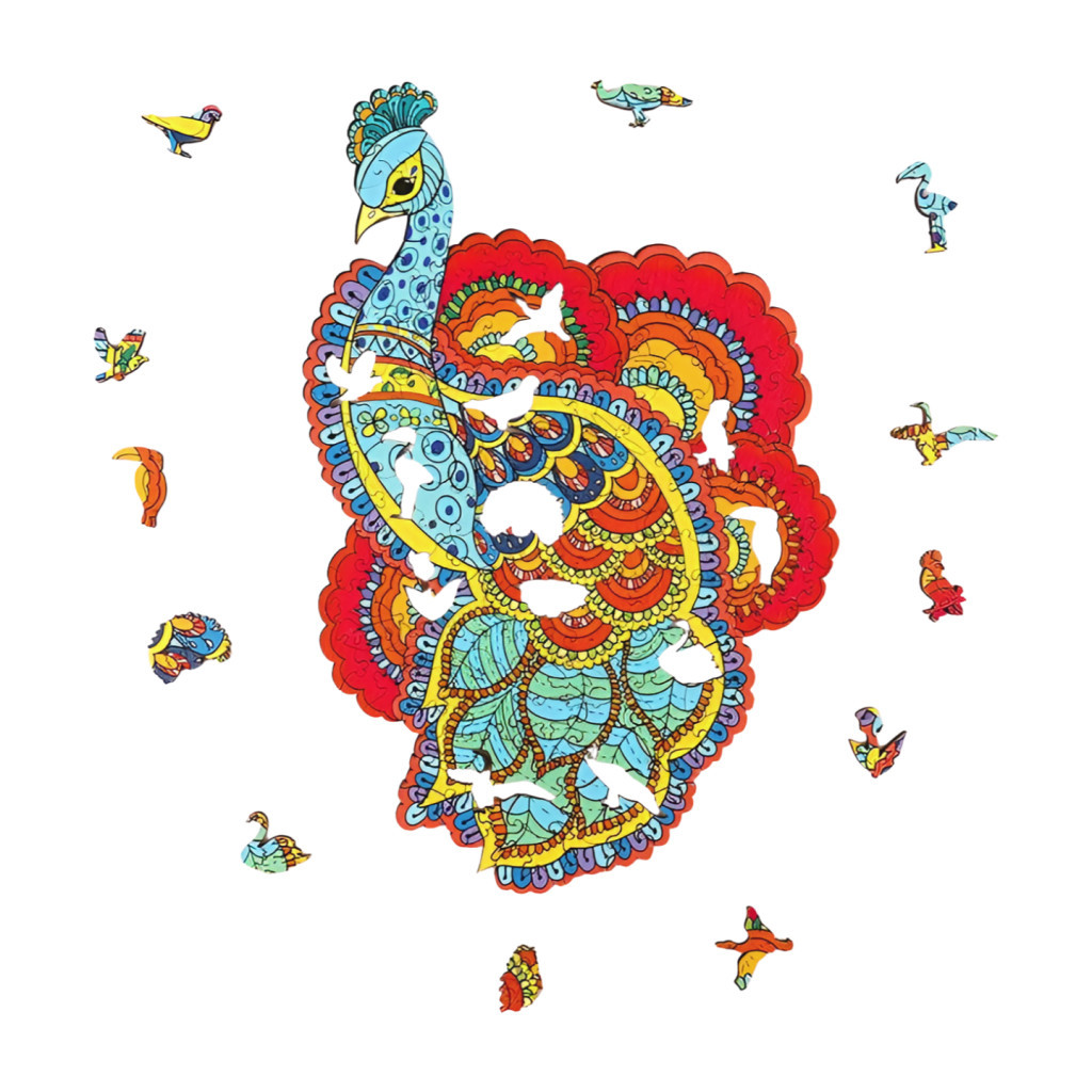 Színes fa puzzle, mely lézervágott , festett, apró állatfigurákból és növényformákból tevődik össze. Fejleszti a koncentráció, memóriát és kézügyességet. A fiatalabb korosztálytól a legidősebb generációig nagy élményt nyújt az összerakásuk.