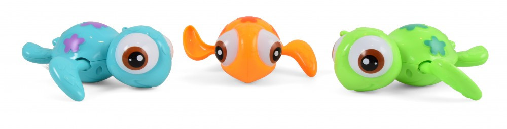 Ezzel a kis teknőssel élmény lesz a fürdőzés, akár bent a házban egy kád vízben, akár kint a forró nyári melegben egy medencében. Vidd magaddal a kis úszkáló teknőst és figyeld mozgását! Húzd fel a teknős hasán található kis tekerőt, amitől a teknős egyből úszkálni kezd! Kövesd végig szemeddel és egész testeddel a teknős útját, ezzel fejlesztve alapvető mozgáskoordinációs készségeket és a megfigyelőkészséget.