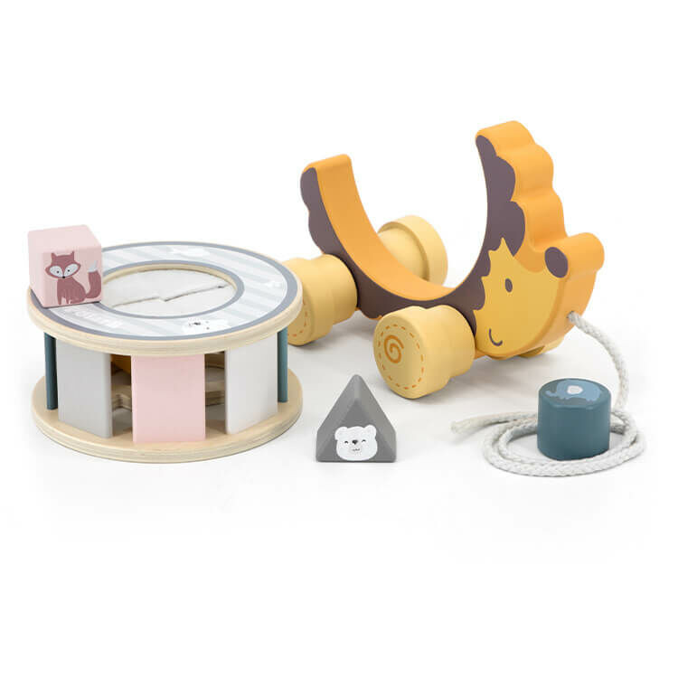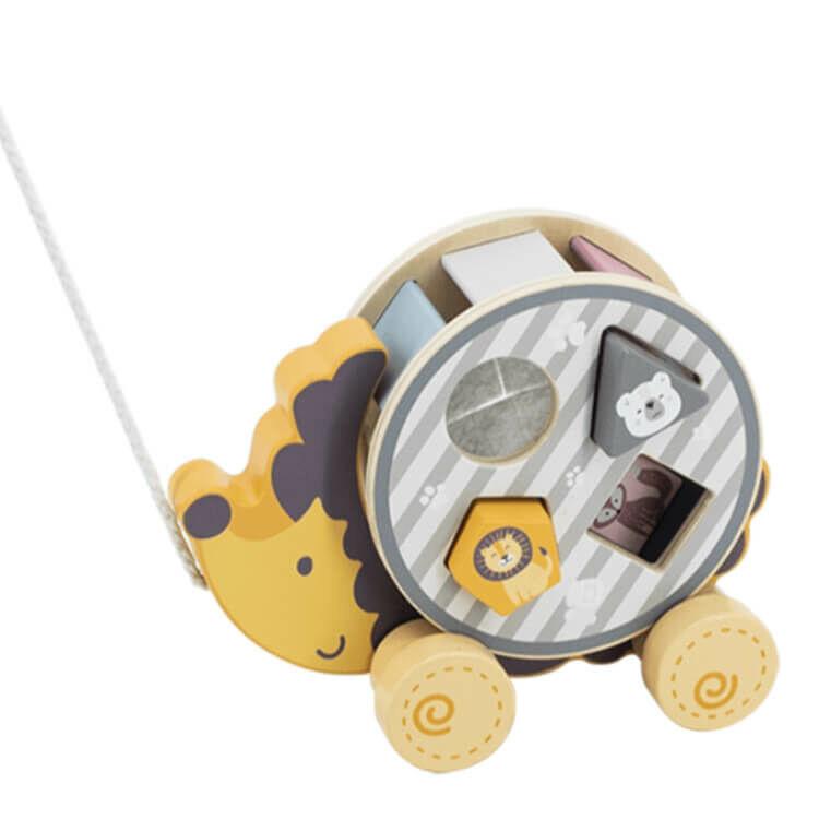 PolarB sünis húzogatós játék és formabedobó egyben a Viga Toys-tól. A formadoboz segít a színek és formák megismerésében. 4 darab különböző színű formát tartalmaz a csomag, melyeken róka, elefánt, oroszlán és jegesmaci található. A kerek formabedobó levehető a süniről. A kis süni húzogatható, közben a kerekek a formabedobót forgatják, így a játék remek szórakozást nyújt már 24 hónapos kortól. A kötél hossza 46 cm. Hozzájárul a kisgyermek szem-kéz koordinációs készségének fejlődéséhez és térlátásához.