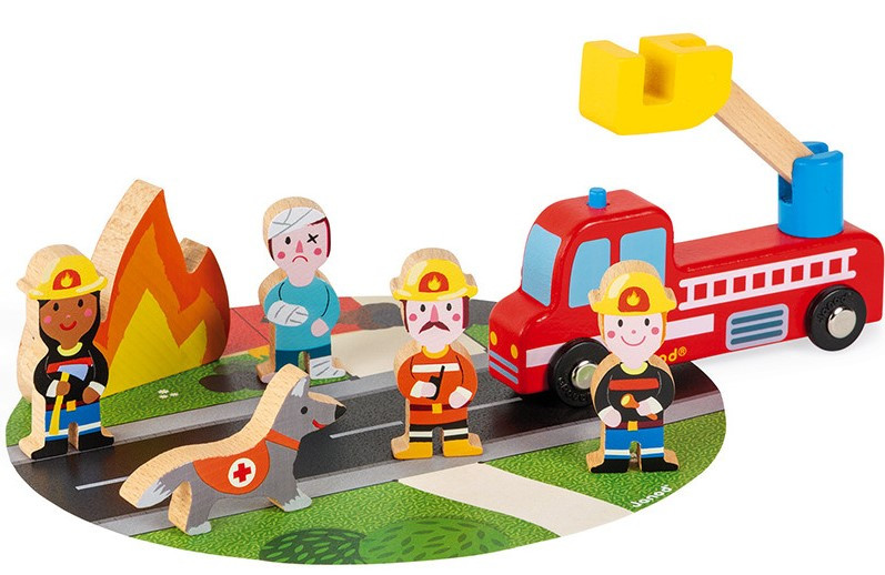 Az ön gyermeke és arról álmodozik, hogy egyszer tűzoltó lehessen? Itt az alkalom, hogy kipróbálja milyen is ez a JANOD - Story tűzoltó fajáték szettjével. A szett 7 db fa játékfigurát tartalmaz (a dekorációkon kívül): 3 db tűzoltót, 1 db sérültet, 1 db mentőkutyát, 1 db lángoló táz figurát és 1 db teherautót!