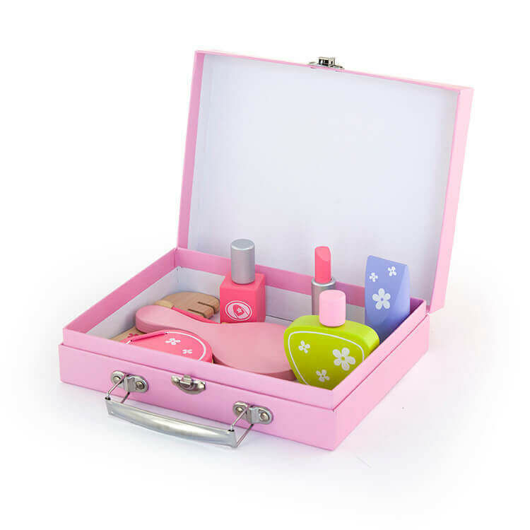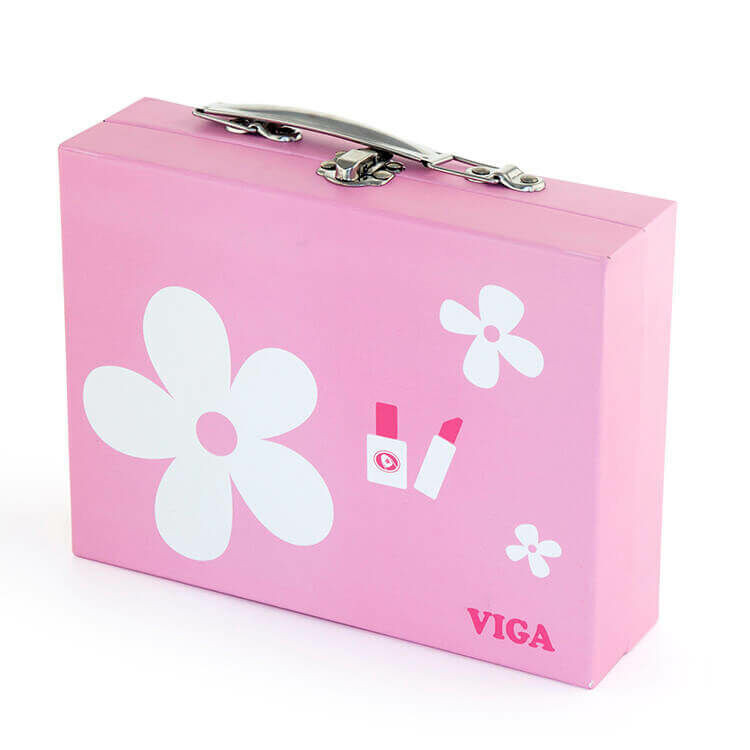 Ez a cuki kis bőrönd igazi kincseket rejt, így egész biztos, hogy nagy kedvence lesz a kislányoknak. A szettben többek között fésűt, különböző smink és szépségápolási termékeket, természetesen fából!