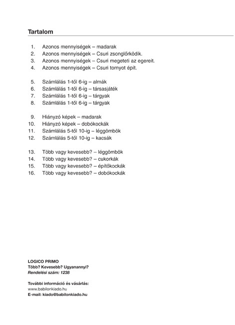 A Primo "Több? Kevesebb? Ugyanannyi?" feladatkártyák elsősorban a számolást, alapvető matematikai készségeket, a több/kevesebb/azonos mennyiségek ismeretét segíti.