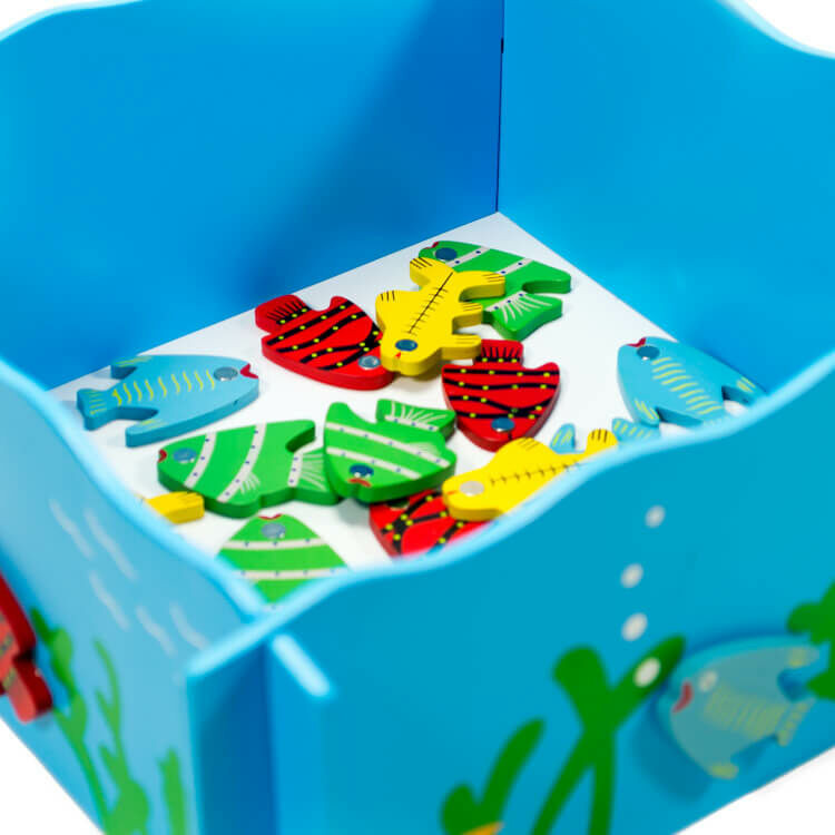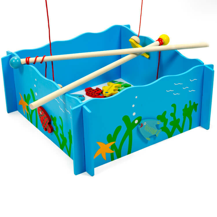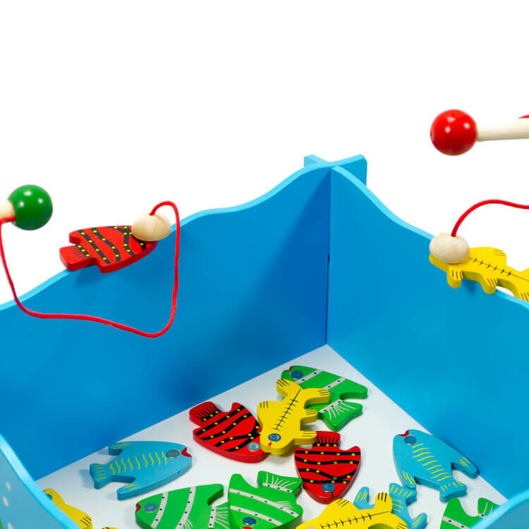 Mágneses horgászjáték, mellyel 4 fő is játszhat egyszerre. A medencében 20 darab 4 különböző színű halacska van és ezeket kell időre kihorgászni. Mindenki olyan színű halat igyekszik kifogni, amilyen színű a horgászbotjának a vége.A mágneses horgászjáték fejleszti a koncentrációs készséget és a szem-kéz koordinációt.