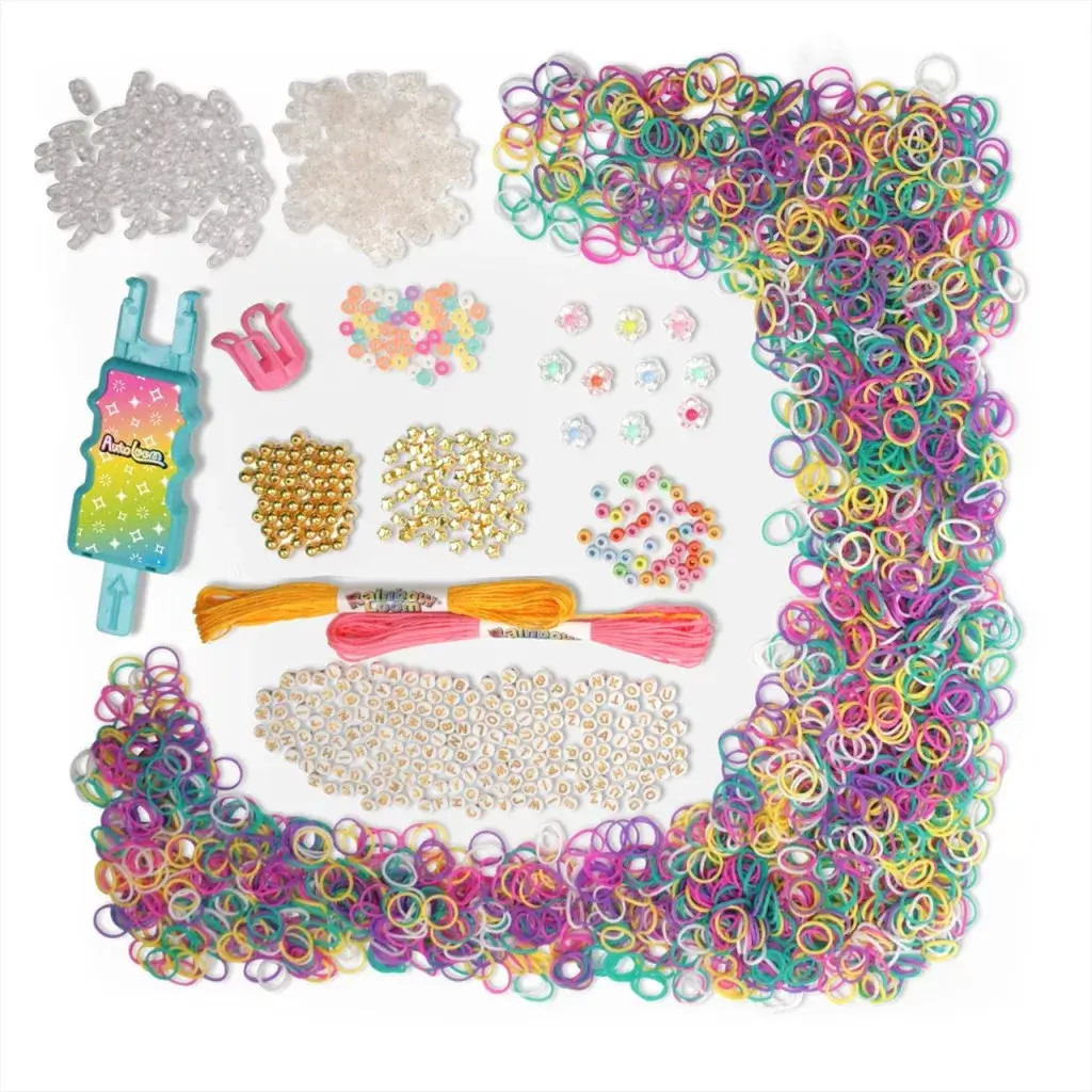Ez a sokoldalú kreatív készlet a karkötőkészítést egy új szintre emeli: a színes gumigyűrűk mellett fonalakkal és gyöngyökkel is dolgozhatsz, így igazán egyedi, térhatású ékszerek készíthetők.