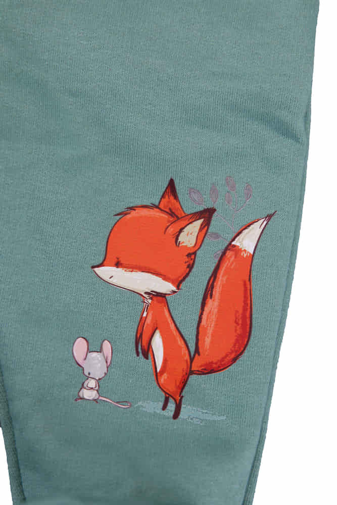 Belül bolyhos pamut kisfiú baba nadrág rókás mintával Puha, meleg és kényelmes - ez a belül bolyhos pamut kisfiú baba nadrág a legjobb választás a hidegebb hónapokra. Zöld színű nadrágban a kis huncutok ellenállhatatlanul cukik lesznek, míg a rókás minta még a legkomorabb napokon is mosolyt csal az arcukra. Az elasztikus gumis derék könnyen alkalmazkodik a babák mozgásához, biztosítva a tökéletes illeszkedést és kényelmet. A lábfejes kialakítás pedig segít megtartani a meleget a kicsik lábán. Könnyen kezelhető, szín- és formatartó minőségi anyagból készült, így tökéletes választás azok számára, akik szeretnének egy praktikus, mégis stílusos darabot a babájuk szekrényébe. Könnyen kezelhető és mosható, szín- és formaálló. I. osztályú minőségű, kiváló magyar termék. Anyaga 65% pamut és 35% poliészter