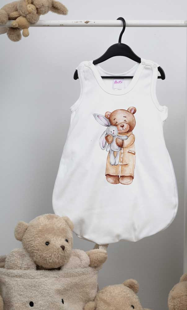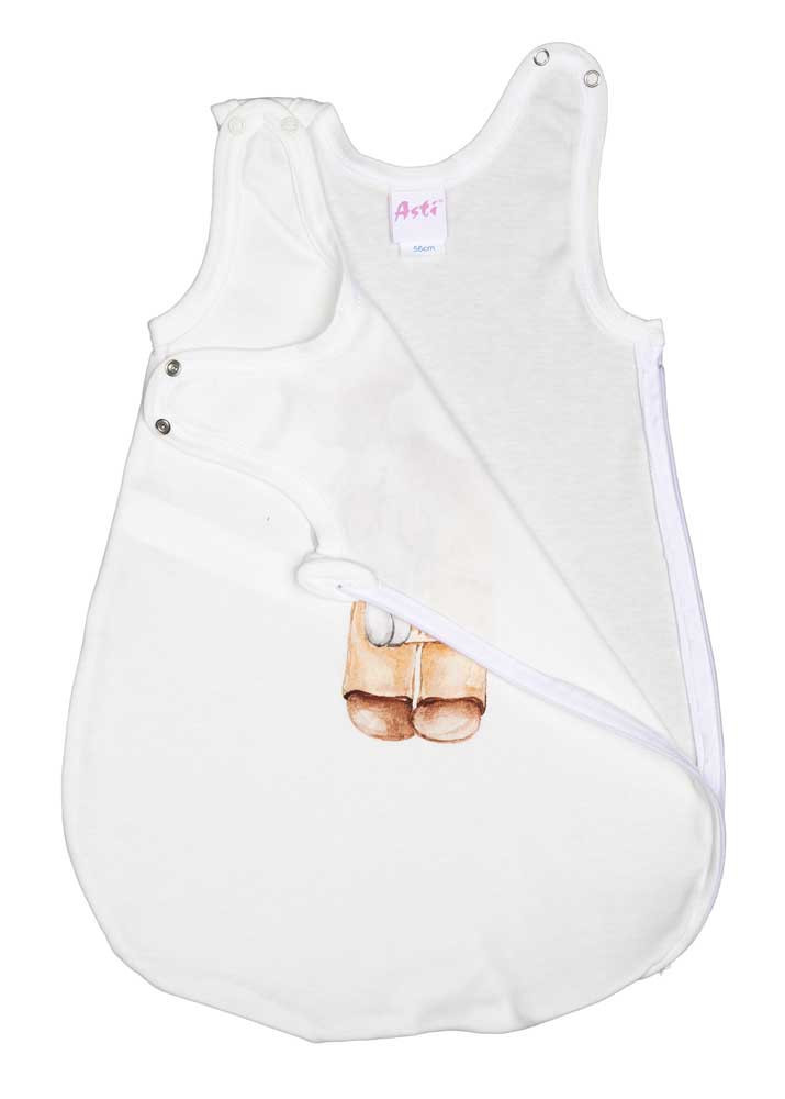 Ujjatlan vékony pamut hálózsák Macis mintával 1 TOG Öltöztesse álomba kisbabáját ebben a fehér, macis mintás, ujjatlan hálózsákban! Az oldalt cipzáras, vállon patentos kialakításnak köszönhetően könnyedén felvehető és levehető, így az éjszakai pelenkázás sem lesz gond. A hálózsák 100% pamut anyagból készült, ami puha érintésű és légáteresztő, így a baba éjjel-nappal kényelmesen és biztonságosan tud majd aludni. A minőségi magyar termék érzékeny bőrű babák számára is ideális, hiszen nikkelmentes patenttal készült, ami nem vált ki allergiás reakciót. A 1 TOG értékű hálózsák tökéletes választás melegebb hónapokra. Segítünk a választásban: táblázatunk segítségével könnyedén kiválaszthatja a megfelelő hálózsákot az évszaktól és a hőmérséklettől függően.