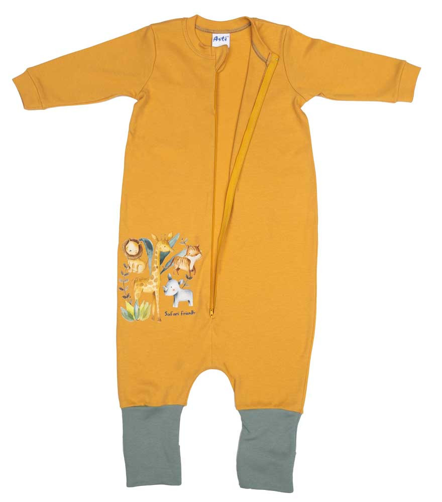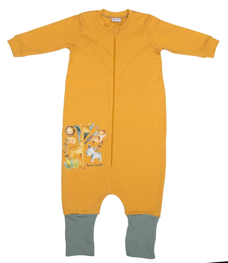 Hosszú ujjú vékony pamut tipegő hálózsák szafaris mintával 1 TOG Elbűvölő szafaris mintával készült, okker színű, hosszú ujjú tipegő hálózsák, mely úgy öleli be a kicsiket, mint egy puha, meleg ölelés. Vékony pamut anyag kiváló nyári napokra, míg a praktikus elöl cipzáras kialakítás megkönnyíti a használatot. A lábszárnál felhajtható 2 méret pedig biztosítja, hogy a hálózsák tökéletesen illeszkedjen a babádhoz. Minőségi magyar termék, az anyaga 100% pamut, így nem csak kényelmes, de rendkívül tartós is. I. osztályú minőség, mely a legjobb választás a babád számára. Anyaga: 100% Pamut Minőség: I. osztály