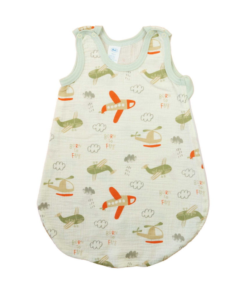 Ujjatlan vékony hálózsák Repülőgép mintával 1 TOG Öltöztesse álomba kisbabáját ebben az repülőgép mintás, ujjatlan hálózsákban! Az oldalt cipzáras, vállon patentos kialakításnak köszönhetően könnyedén felvehető és levehető, így az éjszakai pelenkázás sem lesz gond. A hálózsák 100% pamut anyagból készült, ami puha érintésű és légáteresztő, így a baba éjjel-nappal kényelmesen és biztonságosan tud majd aludni. A minőségi magyar termék érzékeny bőrű babák számára is ideális, hiszen nikkelmentes patenttal készült, ami nem vált ki allergiás reakciót. A 1 TOG értékű hálózsák tökéletes választás melegebb hónapokra. Segítünk a választásban: táblázatunk segítségével könnyedén kiválaszthatja a megfelelő hálózsákot az évszaktól és a hőmérséklettől függően.