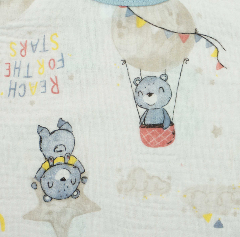Ujjatlan vékony hálózsák Macis mintával 1 TOG Öltöztesse álomba kisbabáját ebben az maci mintás, ujjatlan hálózsákban! Az oldalt cipzáras, vállon patentos kialakításnak köszönhetően könnyedén felvehető és levehető, így az éjszakai pelenkázás sem lesz gond. A hálózsák 100% pamut anyagból készült, ami puha érintésű és légáteresztő, így a baba éjjel-nappal kényelmesen és biztonságosan tud majd aludni. A minőségi magyar termék érzékeny bőrű babák számára is ideális, hiszen nikkelmentes patenttal készült, ami nem vált ki allergiás reakciót. A 1 TOG értékű hálózsák tökéletes választás melegebb hónapokra. Segítünk a választásban: táblázatunk segítségével könnyedén kiválaszthatja a megfelelő hálózsákot az évszaktól és a hőmérséklettől függően.