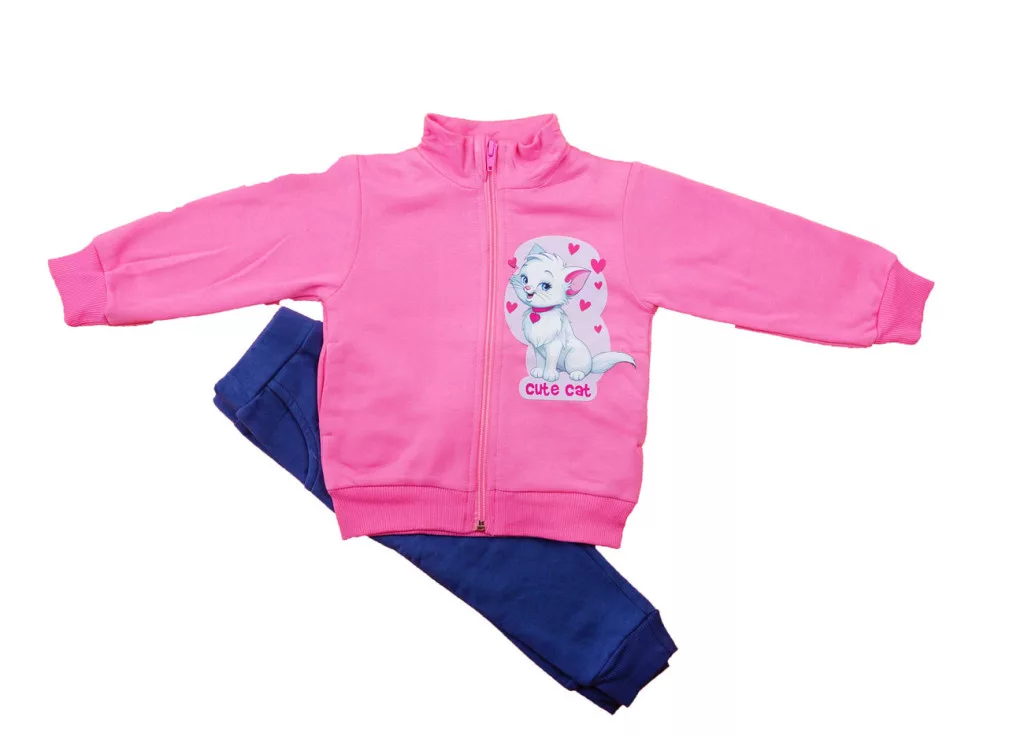 2 részes kislány szabadidő szett – ahol a kényelem és a bájos stílus találkozik! Ez az aranyos cica mintával díszített, 2 részes szabadidő szett garantáltan elnyeri a kislányok tetszését. A szett igazán lányos színvilágú, 65% pamut - 35% poliester anyagból készült, így puha tapintású, bőrbarát és egész napos kényelmet biztosít viselése során. A szabadidő felső praktikus oldalzsebekkel rendelkezik, amelyek nemcsak divatosak, hanem a kisebb kincsek tárolására is ideálisak. A hozzá tartozó gumis derekú nadrág szintén oldalzsebes kialakítású, így a kislányok kedvenc apróságai mindig kéznél lehetnek. A szett Magyarországon készült, kiemelkedő, I. osztályú minőségben, amely garantálja a tartósságot és a hosszú élettartamot. A pamut alapanyag könnyen kezelhető, jól mosható, és gyakori használat mellett is megőrzi formáját és színét. Tökéletes választás hétköznapi viseletre, óvodába, iskolába vagy hétvégi kikapcsolódáshoz – amikor a kényelem és a cuki megjelenés egyaránt fontos. Minőségi magyar termék Anyaga: 65% pamut - 35% poliester Minőség: I. osztály