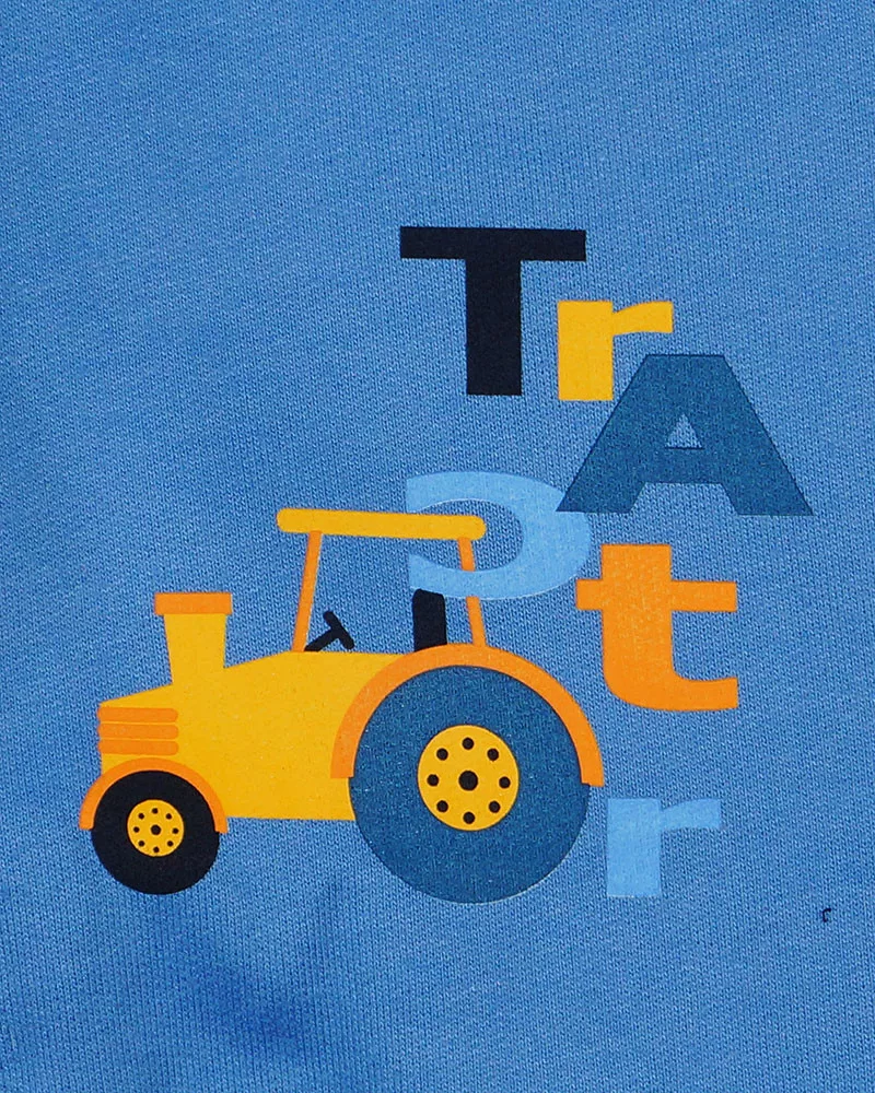 Belül bolyhos, meleg, magas pamuttartalmú anyagból, vagány traktor mintával az egyik szárán.