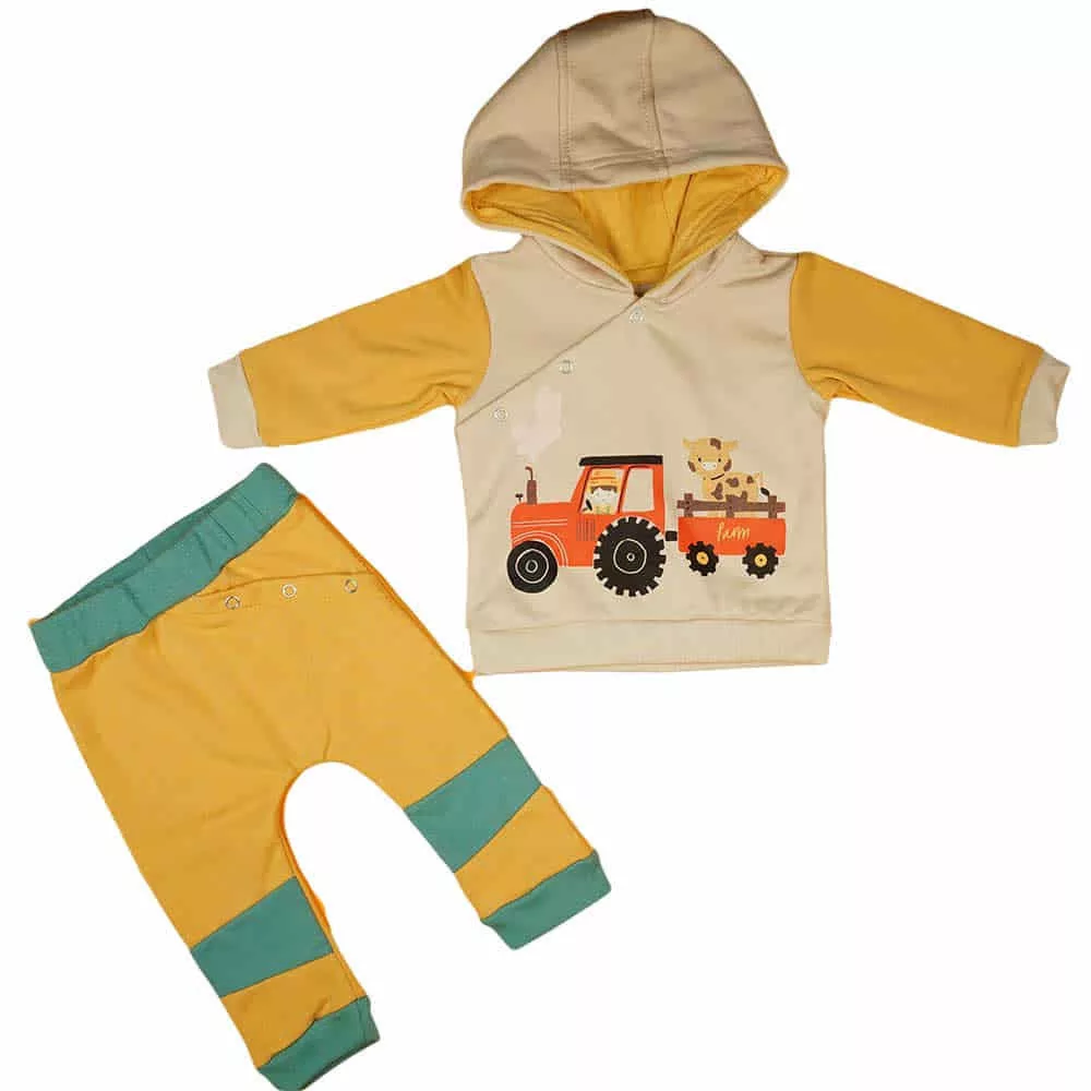 Belül bolyhos fiú szabadidő szett traktoros mintával