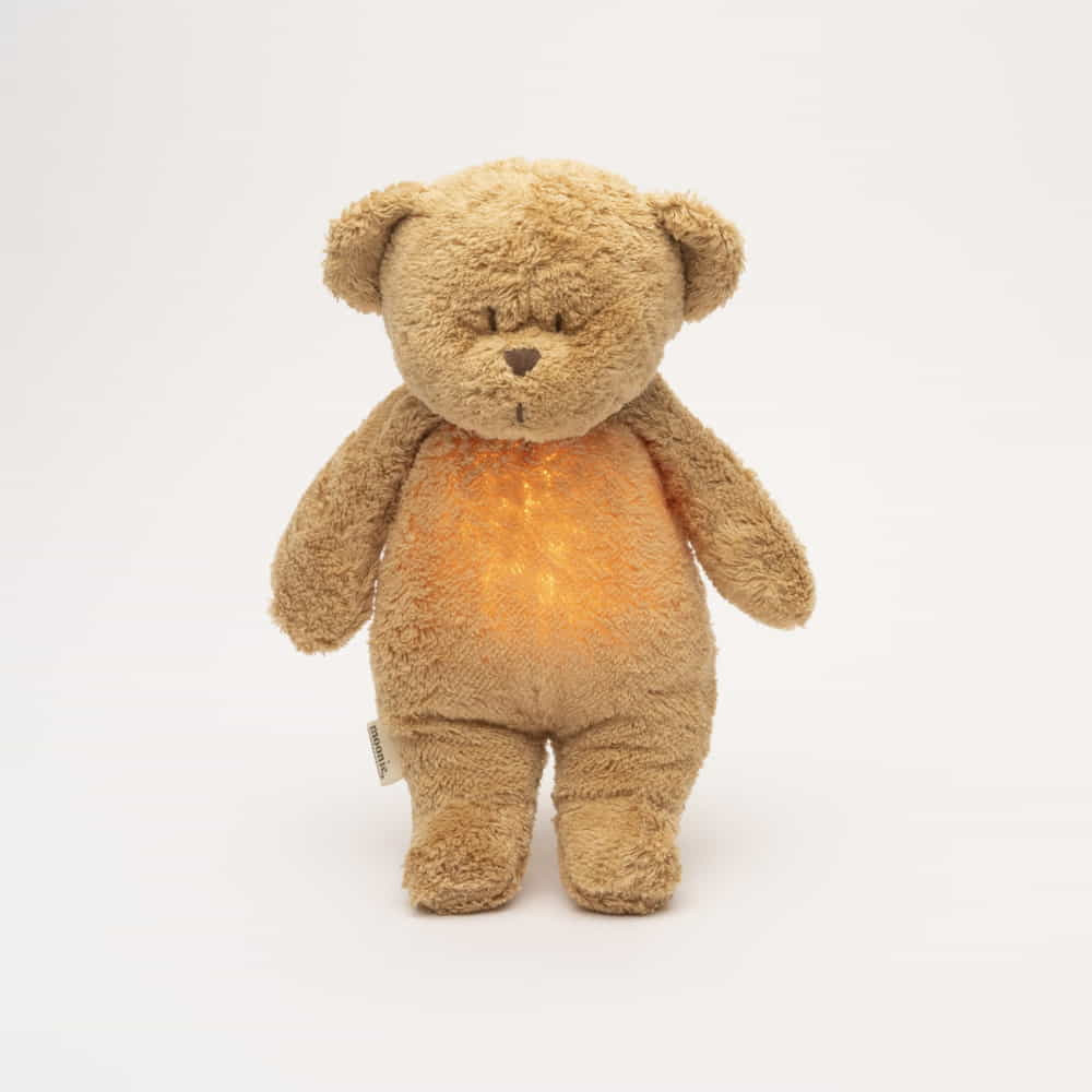 Moonie 2.0 the Organic Humming Friend dallammal és lámpával maci- CAPPUCCINO